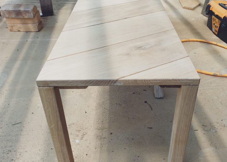 An aspect I like about this – all the wood used is from those leftover floor planks. So somewhat of an environmental twist there, never mind travelling with the stock and the finished piece between our home and the country house where we have the workshop.